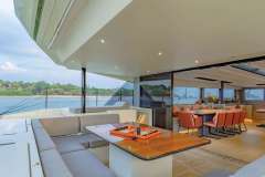 Step aboard JACK and discover a yacht that feels more like a stylish urban loft than a traditional vessel. With an impressive 9.3-meter beam, she offers remarkable volume and open-plan living. Designed by a top interior designer, every space feels fresh, contemporary, and beautifully detailed. At the heart of the yacht lies the expansive saloon, complete with: A luxurious lounge, Elegant dining area, Striking walk-around bar, perfect for gathering, entertaining, or simply enjoying panoramic ocean views.