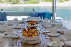 LIBRA is offered primarily as a sailing catamaran. The the heart of the yacht is the main saloon, which connects to the aft deck. The aft deck features a variety of seating areas and that's where most of the delicious meals are served. The modern cabins are located in the 2 massive hulls. The cabins offer unbeatable views in the morning and are located just below deck. Multiple portholes provide a connection with the natural world outside.