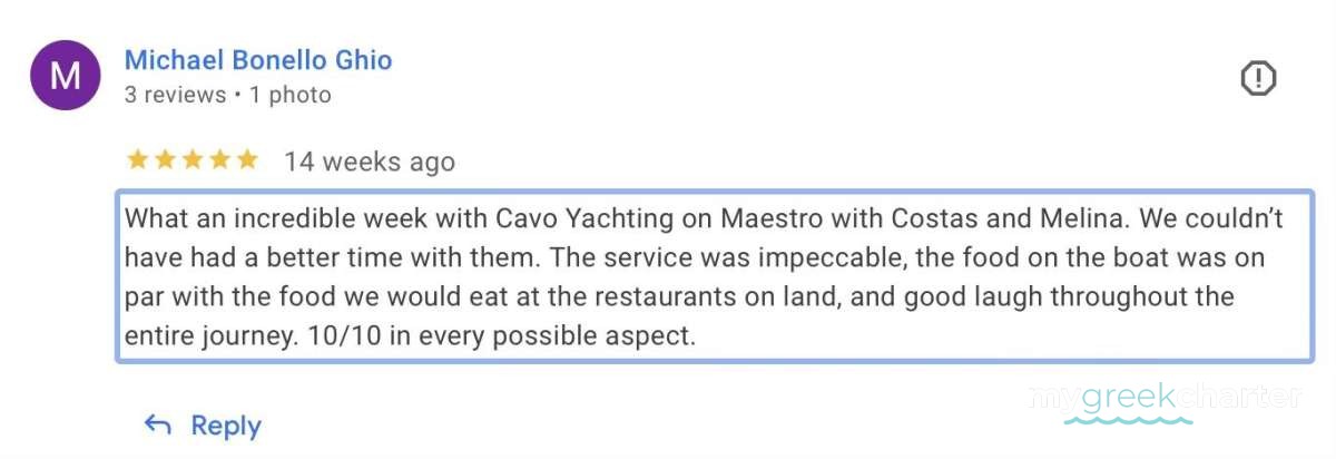 For a sailing catamaran like MAESTRO, the expected APA is 20% to 35% of the charter price (€2,200 - €3,850), making the charter cost €13,200 to €14,850. Exact amount will be confirmed after inquiry.
