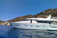 Introduced by DMA Yachting, the impressive charter yacht MAMMA’S is a 78 ft motor yacht. The primary distinction of MAMMA’S are her elegant profile and alfresco dining areas. MAMMA’S spends the summer and winter season in Greece. She was completed by the famous yacht builder San Lorenzo in 2003. A comprehensive refit was fulfilled in 2025. The well-planned yacht layout features 4 cozy cabins and easily accommodates a group of 8 guests.