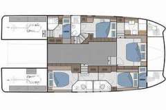Brand new, sleeps eight. MARY’S GRACE is an Aquila 54 power catamaran built in 2026, set up for 8 guests in 4 en-suite double cabins (1 master, 1 VIP, and 2 doubles).