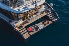 MyMaria is classified primarily as a sailing catamaran. The the heart of the yacht is the main saloon, which connects to the aft deck. The aft deck features a variety of seating areas and that's where the guests spend most of their time. The immersive cabins are located in the 2 massive hulls. The cabins offer designer mattrace beds and feature ensuite bathrooms. Multiple portholes connect you with the outside world.