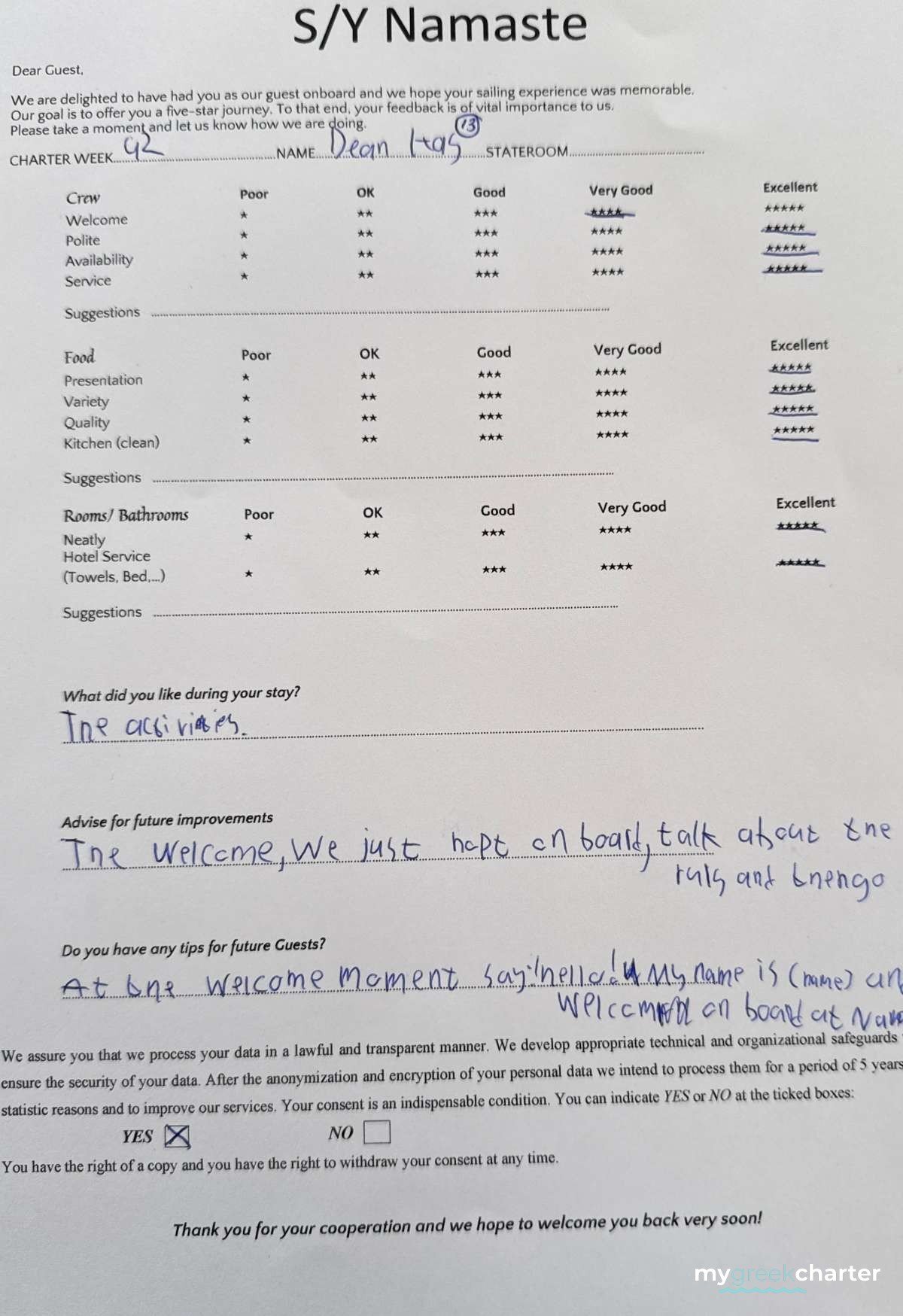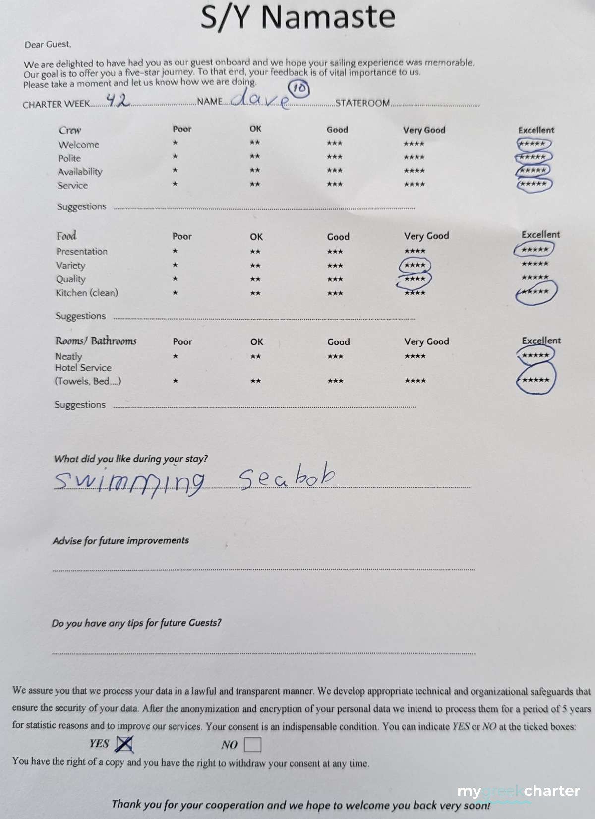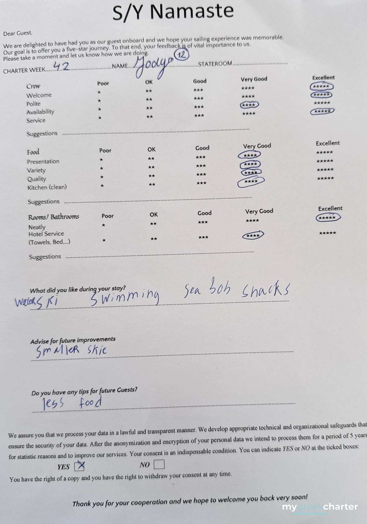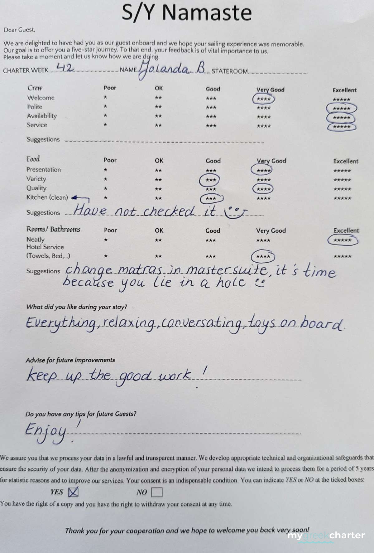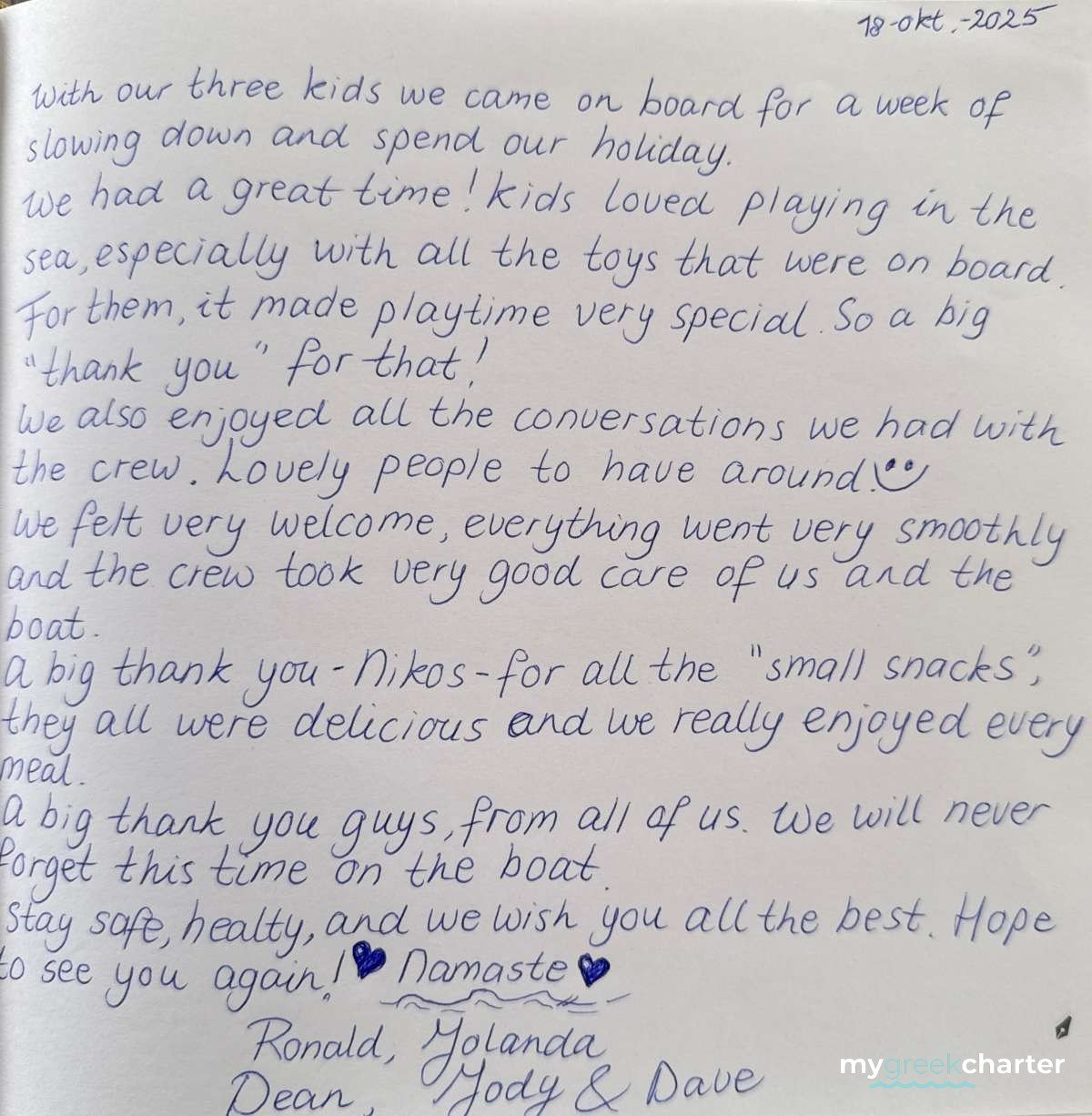 Manos has been a dedicated deckhand since 2022, bringing a wealth of experience from his extensive background in various service sectors. A seasoned sailor, Manos has participated in numerous sailing races, showcasing his adept maritime skills. He holds both a Speedboat Diploma and a sailing Diploma, further underscoring his expertise on the water. As a certified diver, his versatility and safety awareness at sea are his second nature! He is kind, professional and a great team player. Fluent in Greek and English, Manos is a valuable asset to the Namaste crew, ensuring smooth operations and top-notch service.