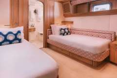 NATALIA V accommodates 12 guests in five well-appointed cabins, including a full-beam owner’s suite on the main deck, with walk-in wardrobe and en suite. Two doubles and two twins reside on the lower deck, each with en suite.