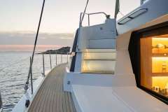 NEW HORIZONS 4 is classified primarily as a sailing catamaran. The yacht layout radiates from the main saloon, which connects to the aft deck. The aft deck features a variety of seating areas and usually it is where you, as a charter guest, spend most of your time. The fascinating cabins are connected by stairs to the main saloon - roomy, comfortable and pleasant. The cabins offer unbeatable views in the morning and are located just below deck. Multiple portholes offer desirable views, while providing privacy if needed.