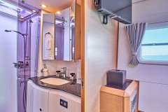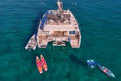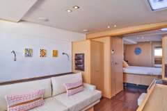 NOVA is classified primarily as a sailing catamaran. The central space of the yacht is the main saloon, which connects to the aft deck. The aft deck is where heart of the yacht is and that's where most of the delicious meals are served. The immersive cabins offer unbeatable views in the morning and are located just below deck. The cabins are located below the main saloon, connected by stairs (inquire about handicapped access). Multiple portholes supply a sunny feeling, with the option for darkness and privacy.