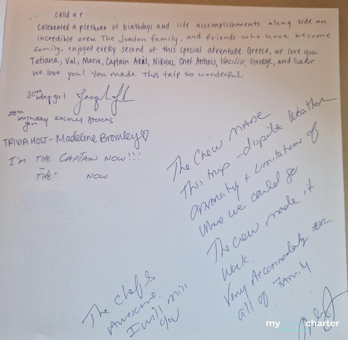 Celebrated a plethora of birthdays and life, accomplishments along side an incredible crew. The family and friends who have become family, enjoyed every6 second of this special adventure. Greece, we love you..