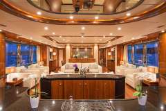Very beautiful main saloon - completely symmetrical with central bar, central lounge, a fold down balcony on either side with sliding glass doors.