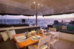 PHANTOM is presented primarily as a sailing catamaran. The central space of the yacht is the main saloon, which connects to the aft deck. The aft deck features a variety of seating areas and that's where most of the delicious meals are served. The immersive cabins offer designer mattrace beds and feature ensuite bathrooms. The cabins offer designer mattrace beds and feature ensuite bathrooms. Multiple portholes supply a sunny feeling, with the option for darkness and privacy.