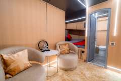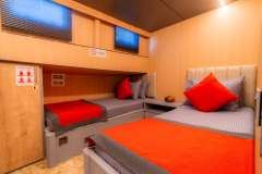 Two master suites, one double, and two twin cabins provide private comfort, each equipped with en-suite bathrooms and 24-hour air conditioning.What is the cabin arrangement of PRINCESS ALIZE?