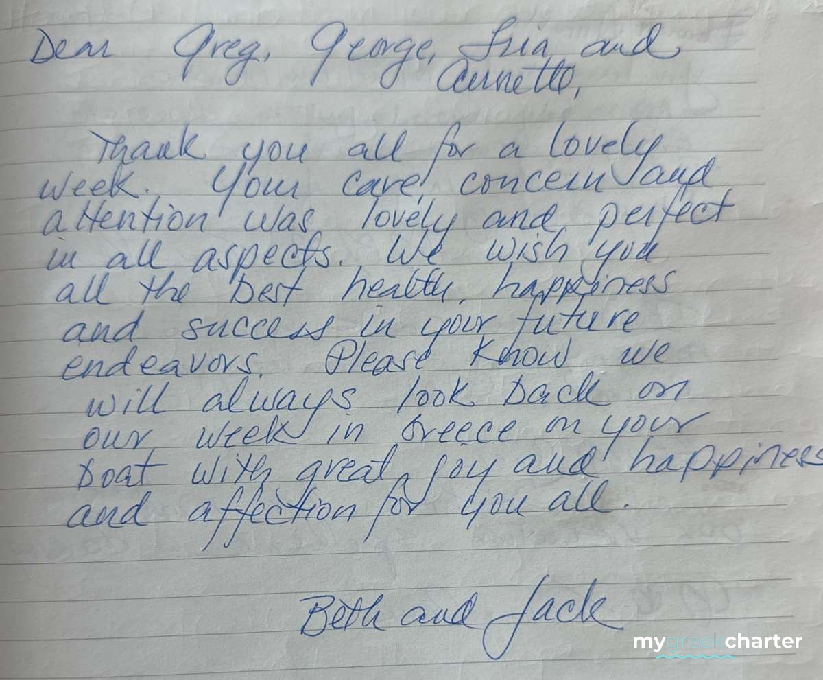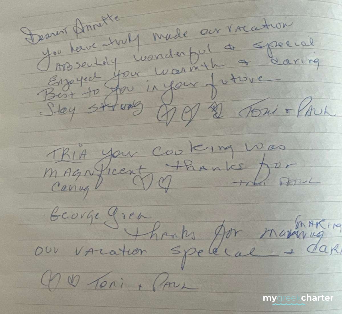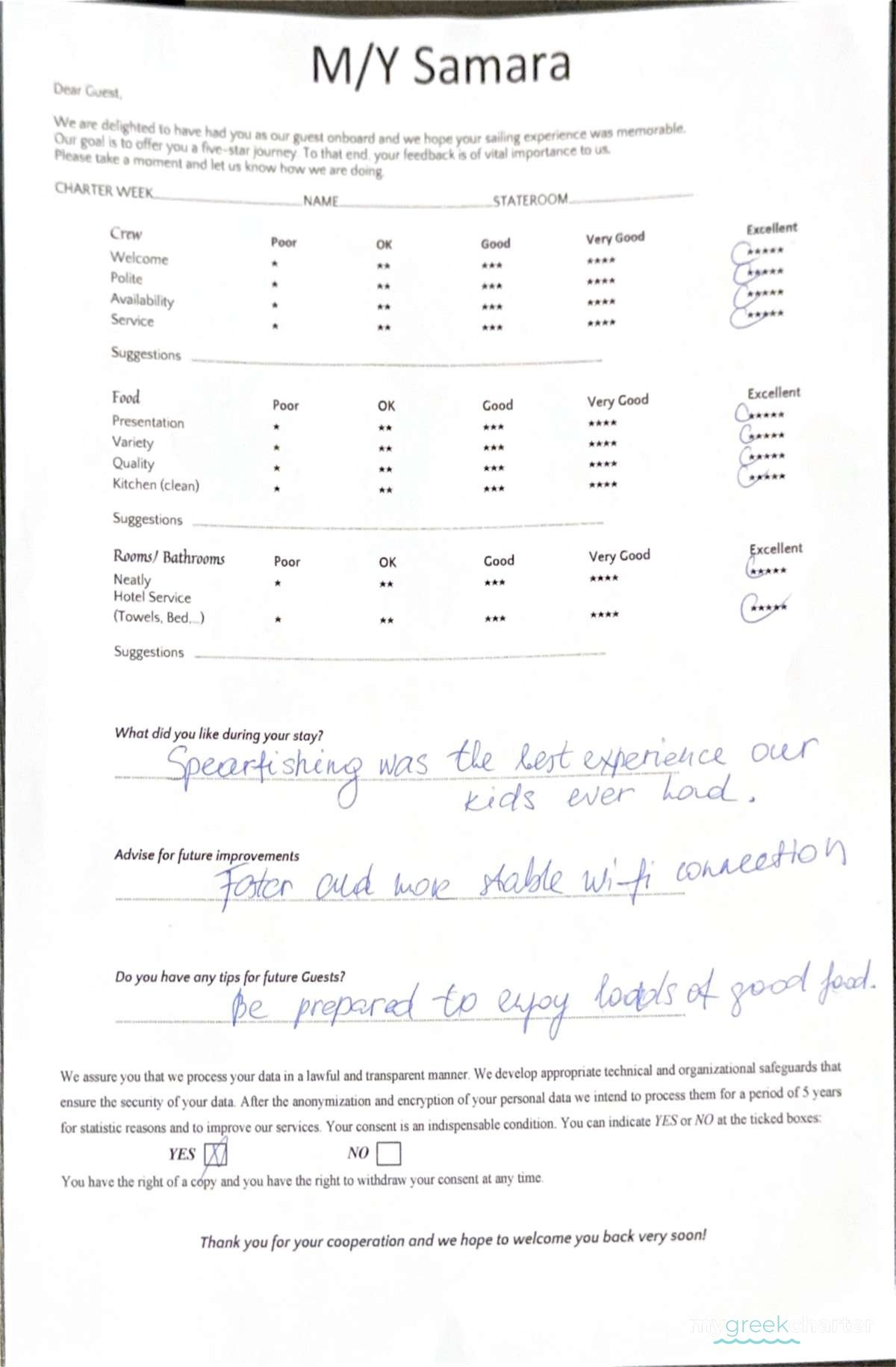 Two families of four chartered this luxurious and spacious yacht for one week. We planned to depart