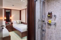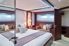 1 master cabin on the main deck with large en-suite bathroom. Bed 2.00m x 2.00m1 VIP cabin on lower deck with walk-in closet and en-suite bathroom. Bed 2.00m x 2.00m