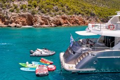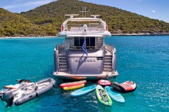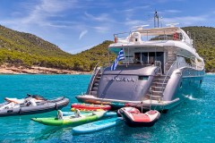Children and adults alike will delight in her range of water toys, and her modern AV system also includes a Playstation 3, making sure everyone on board is kept entertained throughout the charter.