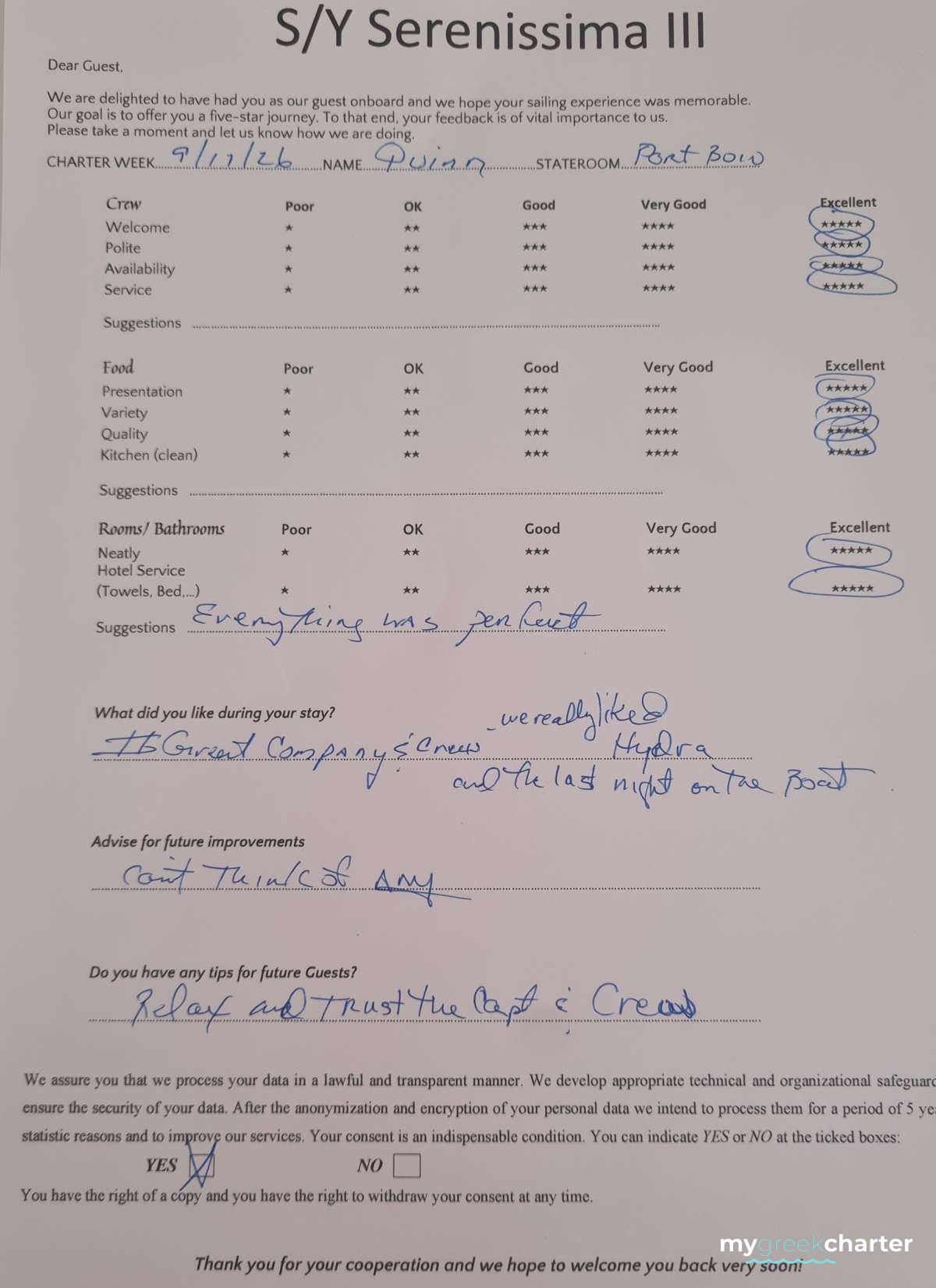 Fluent in both Greek and English, Michalis brings not only culinary excellence but also effective communication skills to enhance the overall experience for those on board.
