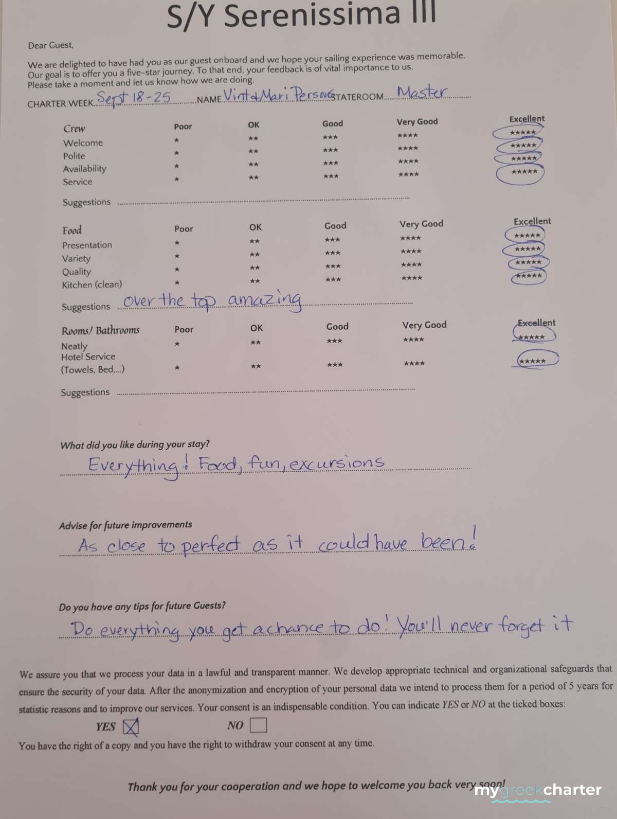 * Please note due to logistics, charters with embarkation or disembarkation in Santorini will be charged one extra day.Rates 2025