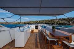 SHOOTING STAR is classified as a superyacht. The key part of the boat -expansive aft deck, continues to the the heart of the yacht - the main saloon. The main saloon is a gathering space with comfortable seating and entertainment areas and enables a number of media entertainment options. 5 welcoming cabins are thoughtfully spread out with vison for maximum room, access, comfort and privacy.