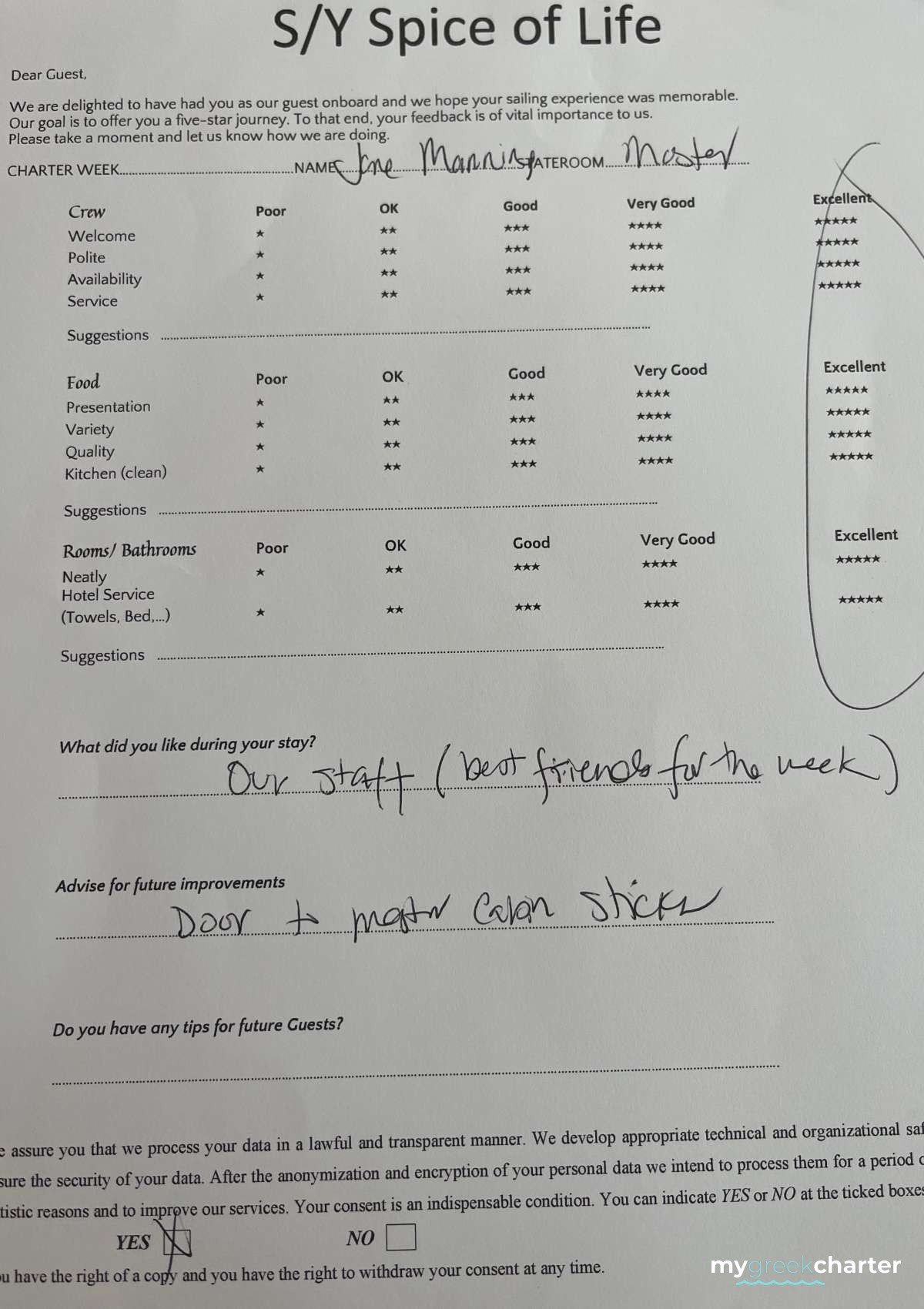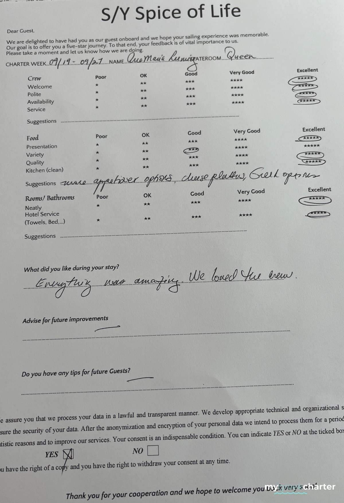 With a dedicated crew of three professionals onboard, including a knowledgeable captain, a skilled chef, and a friendly steward, guests can expect personalized service and seamless hospitality throughout their journey. The experienced crew is committed to ensuring a memorable and exceptional sailing experience for all guests on board.
