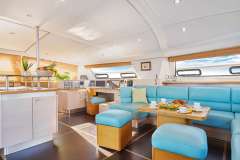 STADIUM is classified primarily as a sailing catamaran. The the core layout is spread out from the main saloon, which connects to the aft deck. The aft deck is generous, with a prominent dining and seating area and that's where most of the delicious meals are served. The tastefully decorated cabins are connected by stairs to the main saloon - roomy, comfortable and pleasant. The cabins offer designer mattrace beds and feature ensuite bathrooms. Multiple portholes provide a connection with the natural world outside.