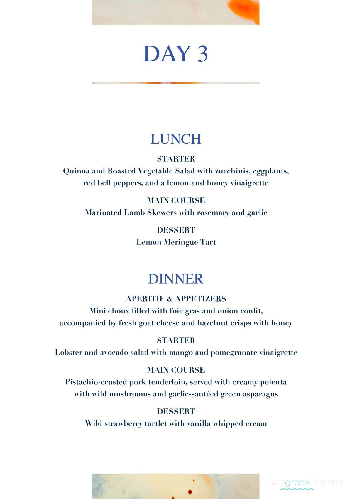 | 3 day charter | 11,400EUR to 15,000EUR | 2,280EUR to 4,500EUR | 1,368EUR to 1,800EUR | 15,048EUR to 21,300EUR | The usual formula is the 7 day charter rate divided by 6, times the number of days (3). Boat policy might differ. 22,800EUR / 6 * 3 days = 11,400EUR |