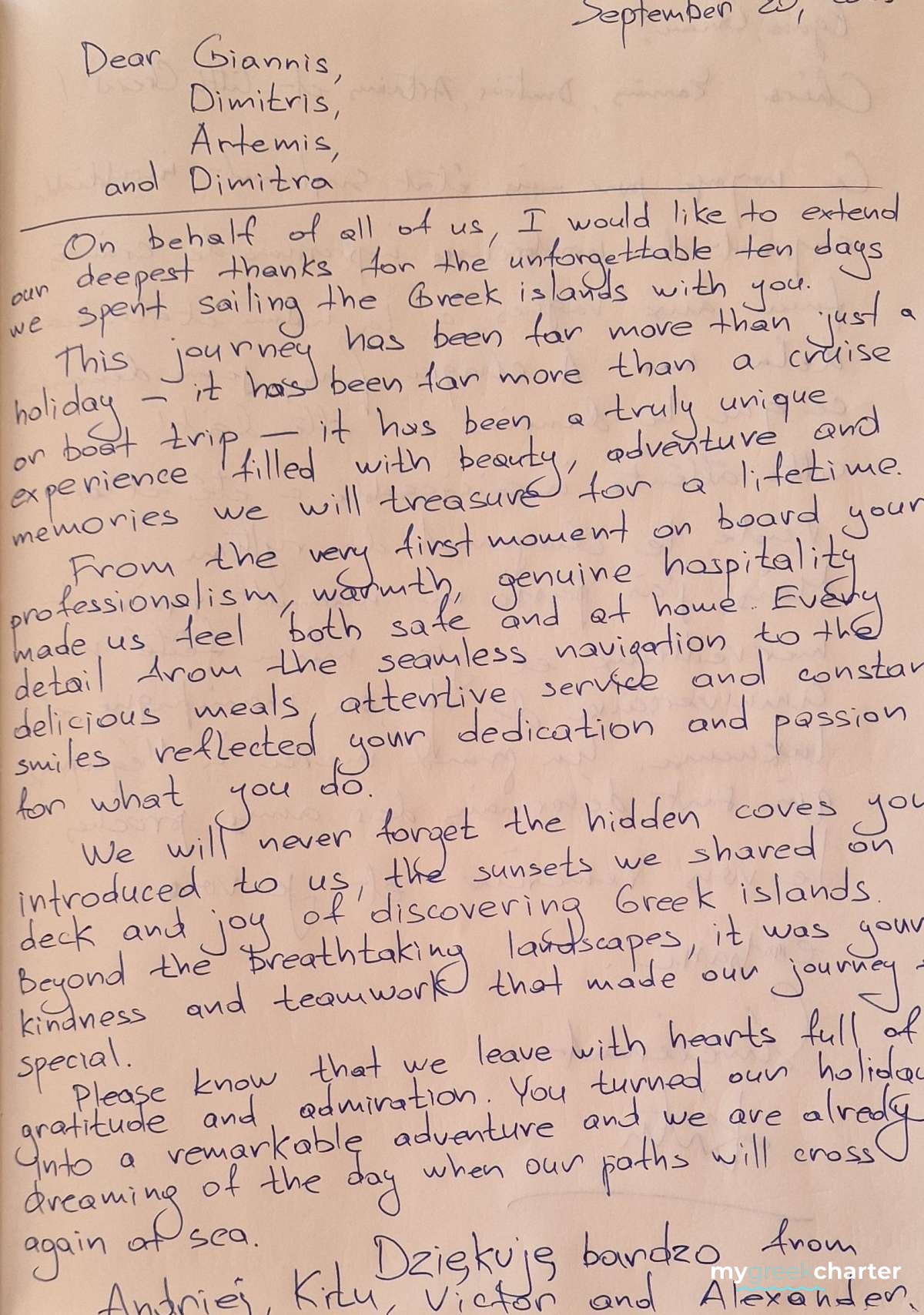 Giannis is a fully certified professional with a 2023 GMDSS License, a 2022 Motorboat License, and a 2016 Skipper License from the Offshore Sailing School. Additionally, he holds a 2016 First Aid and Rescue License from the Hellenic Red Cross, HRT.