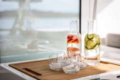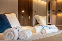 Sunny Dream is offered primarily as a sailing catamaran. The the core layout is spread out from the main saloon, which connects to the aft deck. The aft deck features a variety of seating areas and that's where most of the delicious meals are served. The immersive cabins are connected by stairs to the main saloon - roomy, comfortable and pleasant. The cabins offer unbeatable views in the morning and are located just below deck. Multiple portholes add to the feeling of connection with the discovered environment.