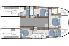 (Bed sizes: 1 Master cabin 1,90 m × 2,00 m, 1 Vip cabin 1,62 m × 2,00 m, 2 Double cabin 1,60 m × 1,90 m)