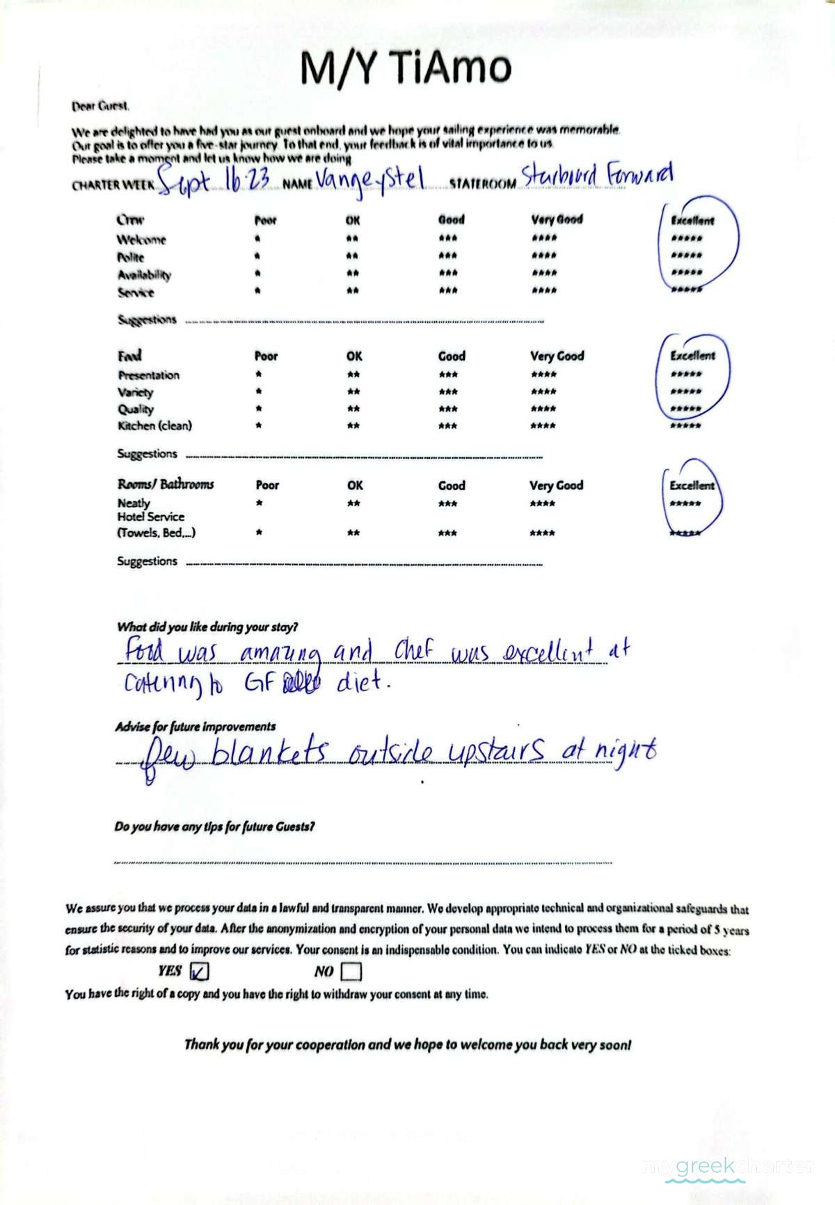 * Please note due to logistics, charters with embarkation/disembarkation in Santorini will be charged one extra day.Rates
