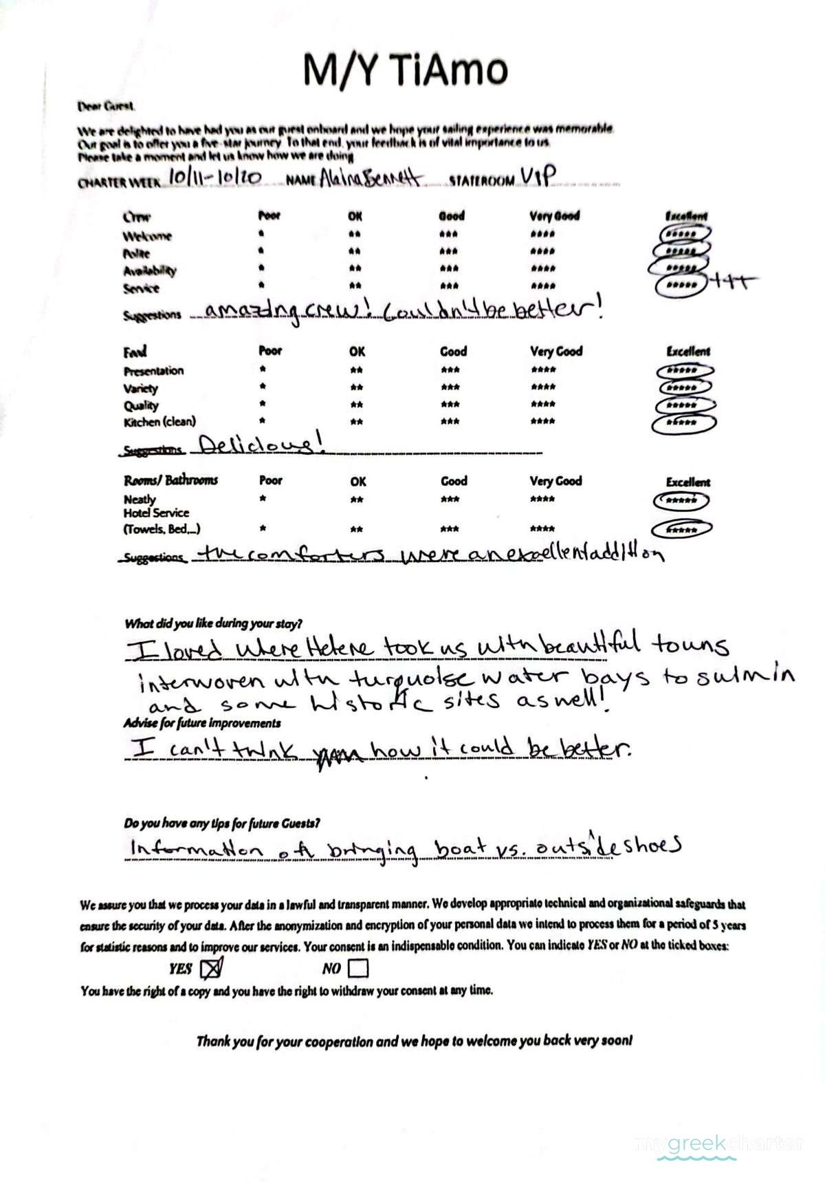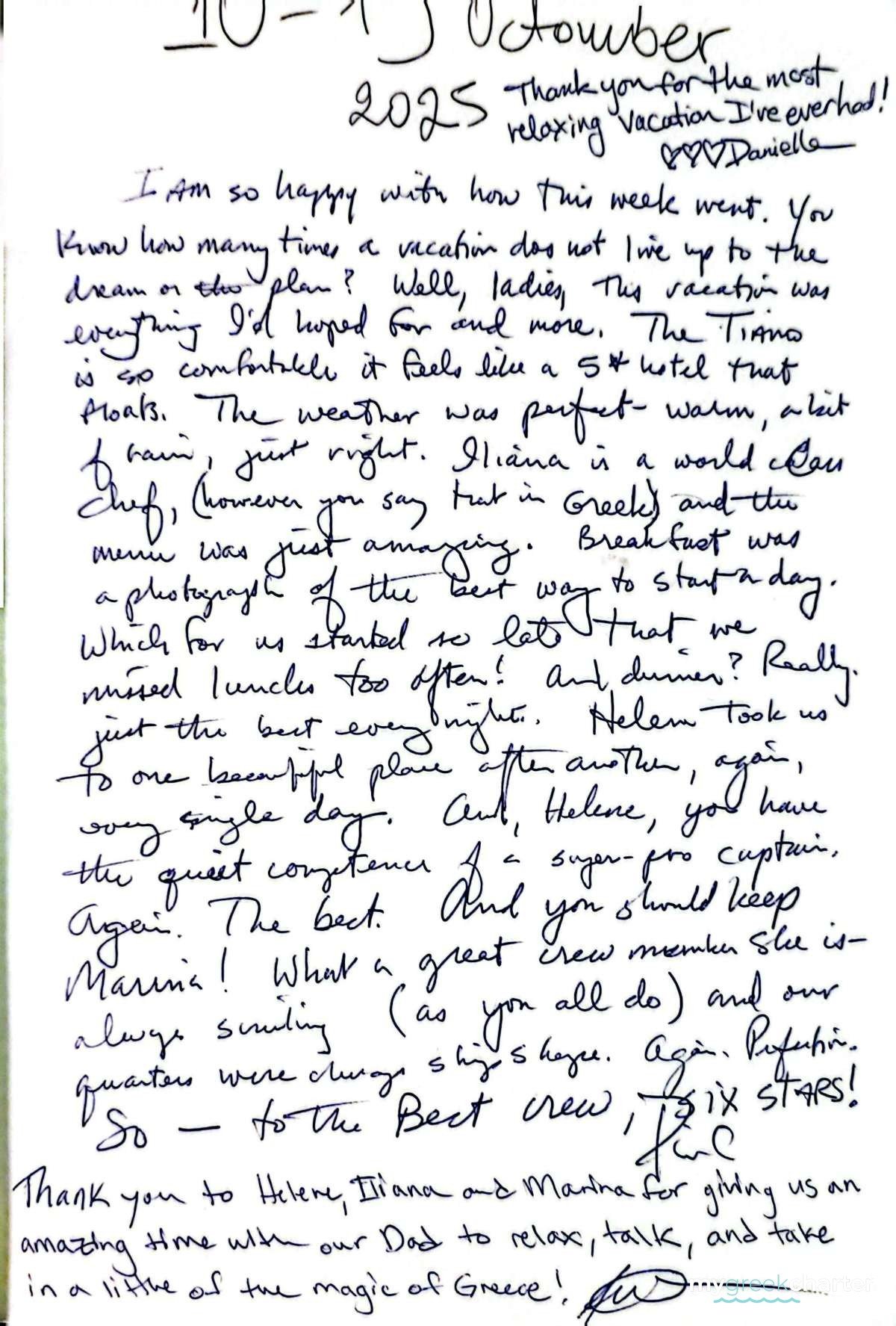 Client Review June 2025 - Excellent communication throughout from Chris at DMA, the boat, the crew, and the experiences were all outstanding. Captain Eleni, Iliana, and Marina onboard TiAmo were simply the BEST! Professional, courteous, fun, great at their jobs…we had a blast with them. The boat was perfect for our group of friends, the weather and the islands, and the ports we visited were simply amazing. I’d recommend DMA, but more specifically, TiAmo and her crew!