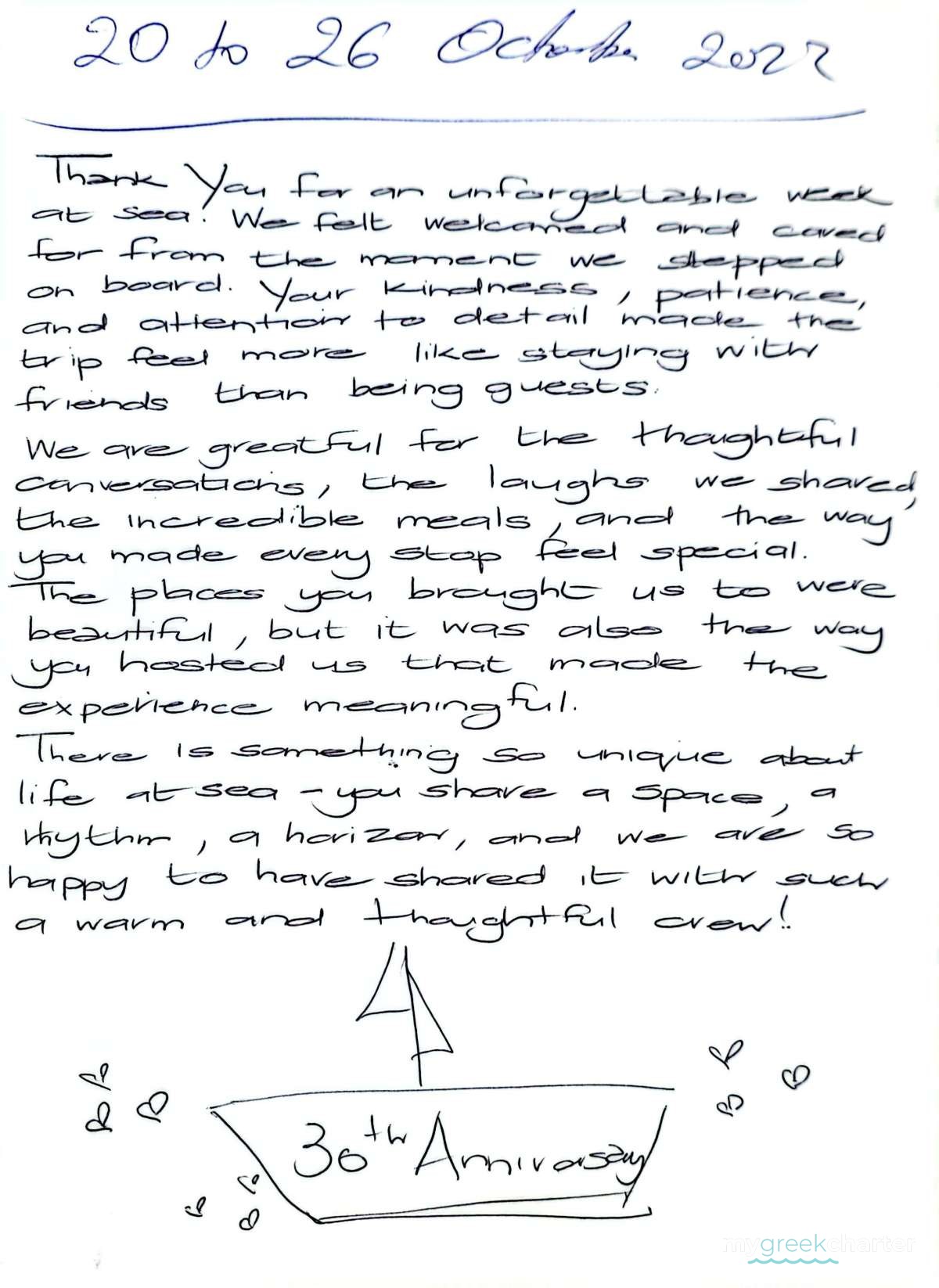* Please note due to logistics, charters with embarkation/disembarkation in Santorini will be charged one extra day.