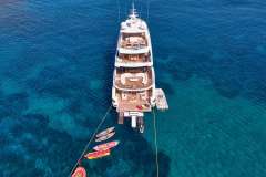 VOLO MARE is classified as a superyacht. The key part of the boat -inviting aft deck, leads to the well-equipped and inviting main saloon. The main saloon is a friendly space with an abundance of seating areas and offers a range of entertainment options. 6 spacious cabins are laid out to allow for comfortable access and private setting.