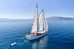 Introduced by DMA Yachting, the majestic charter yacht WHITE PEARL is a 102 ft sailboat. The key elements of WHITE PEARL are her elegant profile and alfresco dining areas. WHITE PEARL spends the summer season in Greece. She was completed by a custom yachtbuilder in 1997. An elegant refit was finalized in 2021. The expansive yacht layout features 6 large cabins and easily accommodates a group of 12 guests.