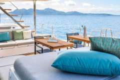 WISH is classified primarily as a sailing catamaran. The the heart of the yacht is the main saloon, which connects to the aft deck. The aft deck is expansive, with a comfortable dining and seating area and that's where most of the meals are served. The tasteful cabins are connected by stairs to the main saloon - roomy, comfortable and pleasant. The cabins offer designer mattrace beds and feature ensuite bathrooms. Multiple portholes add to the feeling of connection with the discovered environment.