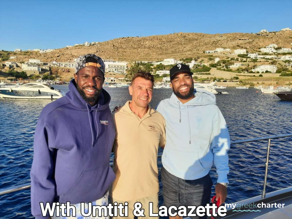 Day charter rates include: captain + 3 hostesses + 1 deckhand, fuel, water/soft drinks, fresh fruit & salads, lunch (shrimp pasta or Greek BBQ or grilled fish/salmon), unlimited French sparkling wine/white/rosé/beer, Wi-Fi, snorkeling gear & SUP, medical equipment; VAT included (commission info on request).