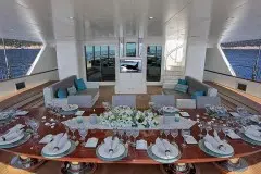 Advertised by DMA Yachting, the astonishing charter yacht MEIRA is a 180 ft yacht featuring a jetski and a hot tub. The most valuable elements of MEIRA are her well-chosen interiors and fantastic layout. MEIRA spends the season in Greece. She was delivered by the renowned boatbuilder Neta Marine in 2018. The well-planned yacht layout features 6 generous cabins and easily accommodates a maximum of 12 guests.