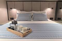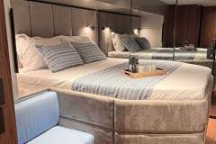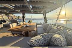This is an 8-guest boat designed like a private mini-hotel, not a compromise. Four double suites, all with ensuite bathrooms, plus a bright main salon and a flybridge set up for real use: sheltered dining, bar area, and wide lounging zones instead of wasted deck space. It’s built to feel open and social, not cramped.