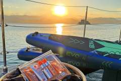 Toys and access are actually thought through. Seabobs, kayak, paddleboards, towable tube, plus a serious tender and that hydraulic swim platform mean getting in and out of the water doesn’t involve gymnastics. Snorkel gear and light fishing gear fill in the downtime between swims and sundowners.