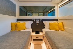 The features Engines: 2 x MAN V8 1200 Generators: Kohler 43kW generators Stabilizers: Zero Speed at Anchor and Underway engines .