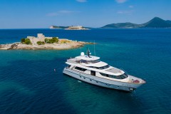 Introduced by DMA Yachting, the astonishing charter yacht VALENTINA II is a 90 ft yacht featuring a hot tub. The most valuable elements of VALENTINA II are her elegant profile and inviting socializing areas. VALENTINA II spends the season in Greece. She was delivered by the renowned boatbuilder SanlorenzoSanlorenzo in 2011. A well-done refit was delivered in 2021. The well-planned yacht layout features 4 generous cabins and comfortably accommodates a maximum of 8 guests.